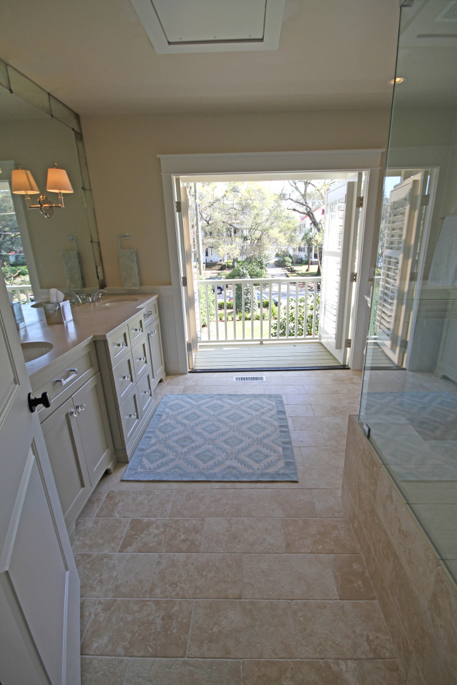 This 2006 home was designed for a client that wanted a timeless french look , one that would last for years to come. I used natural travertine and medium color quarter sawn oak floors. I cater to each individual client. I won't do anything theme like or too trendy, I tend for a classic yet current look. I am currently working in the old village of Mt pleasant on one 1980's house and one 1870's. Each job is unique and takes a different approach. I design everything from the floors, tile, bathrooms, kitchens, paint, wallpaper, all lighting , all furniture , rugs , antiques , paintings, prints, beds and bedding. it is a soup to nuts approach. I even design the landscaping and hardscapes. Working with many sub contractors over the years has served me well, I have many sources for all areas of design. I work on a hourly basis or more preferred , a job overview with an estimate and all design costs passed to the client with all original receipts and my percentage added. I am very flexible and cater to each client's taste, timeframe and budget.